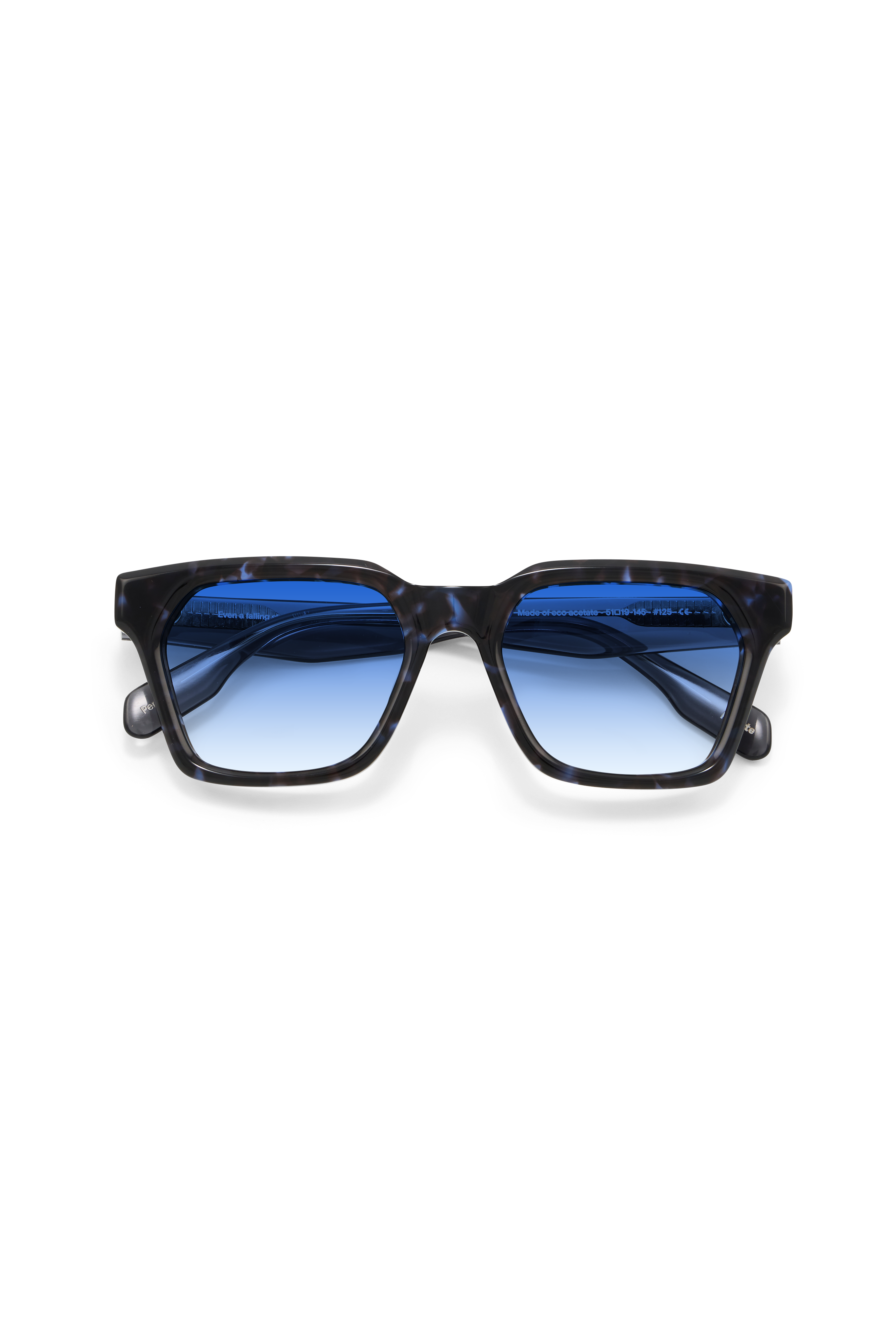 Handgefertigt aus feinstem Öko-Acetat.Vordefinierte Linsen: Tönung Blau Farbverlauf